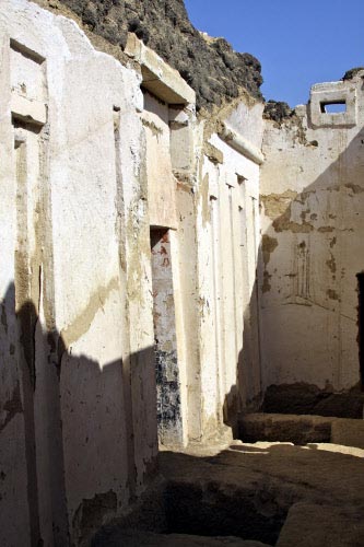 Die neu entdeckte Grabkammer war einst zur Hälfte in den Felsen gehauen und zur anderen Hälfte aus Steinen errichtet worden (im Bild: der Eingang). Sie liegt südlich von den Gräbern der Pyramidenarbeiter, die im vergangenen Jänner in Giseh ausgegraben worden waren. (red/APA) |