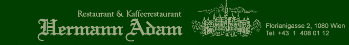 Immer wenn mich der Hunger packt,sei es in Zeiten großer beruflichen oder auch persöhnlichen Belastungen ,aber auch dann,wenn ich eine schöne Stunde verbringen möchte,besuche ich HERMANN ADAMS RESTAURANT.Dort schaut dann alles wieder ganz anders aus und es eröffnen sich bestimmt wieder neue Perspektiven .Daher kann ich Dir nur empfehlen ,dort einmal einen Besuch zu machen.Dieser Mann wird sich sicher um Dein Wohlbefinden kümmern und Dich mit "ALLES LIEBE" und mit einen" Fluchtachterl"oder anderen Aufmerksamkeiten verabschieden